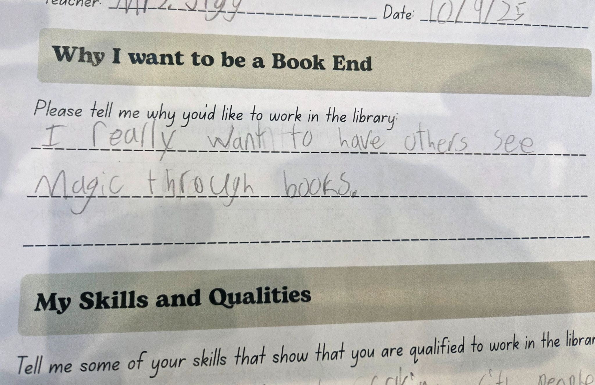 As an example for this last point, the former librarian I worked with is currently taking applications for students to join the school’s Book Budget Club. This group is allocated a budget to improve the school library selection. (See here for a previous article on this project.) The librarian, Micki, shared the following response with me from one of the applications.