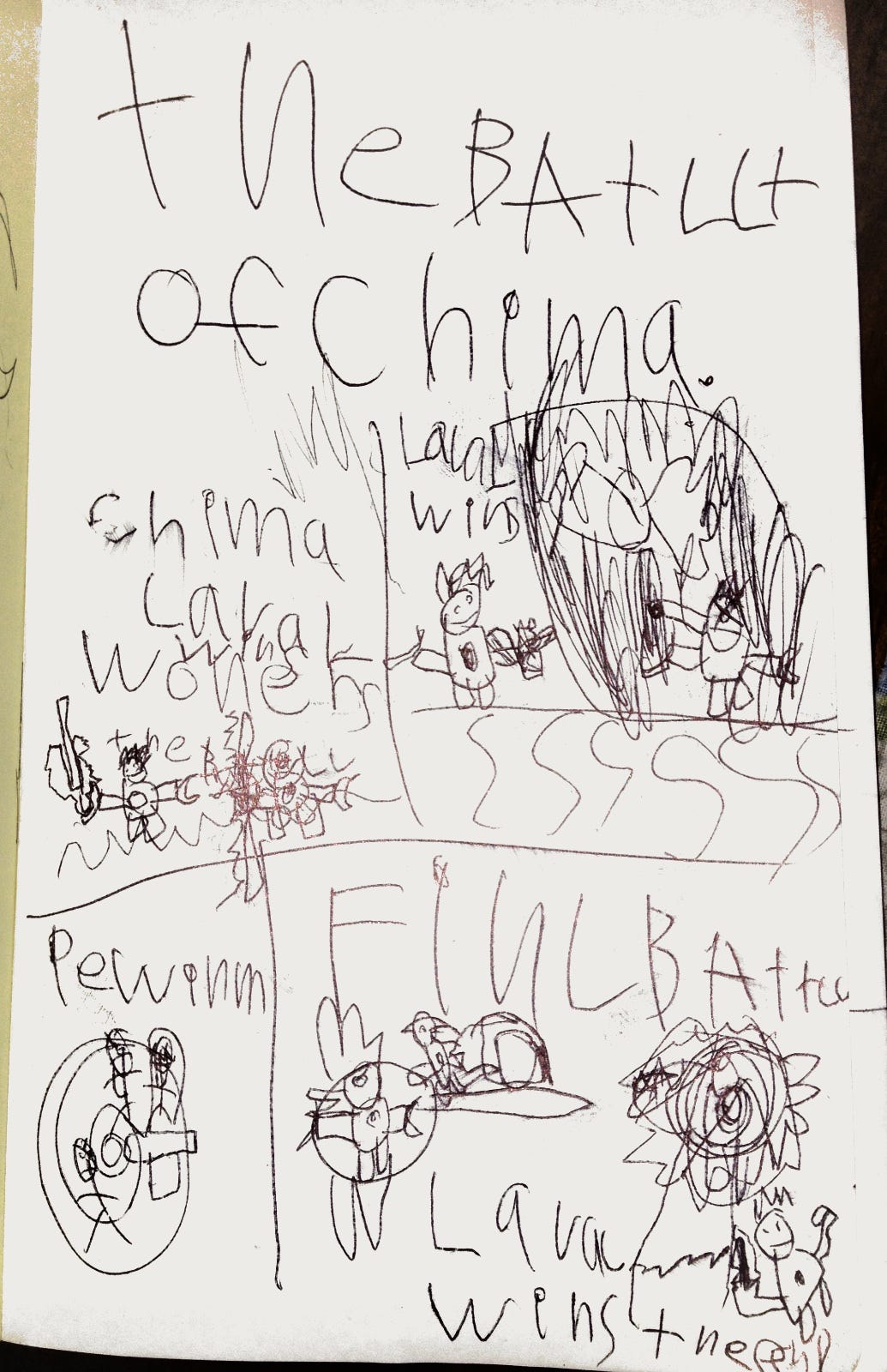 Here are two samples from my son. As you can see, he was into Chima and spooky stories at that time.
