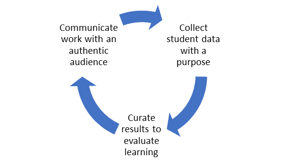 What does this look like in action? We might consider a three-step process for this work: collecting student data, curating the results, and communicating the work.