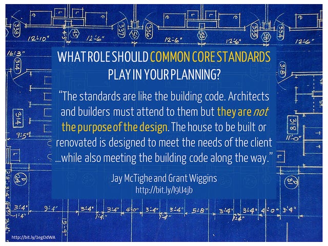 Standards of some form, and hopefully Common Core, should still be in place for schools. Schools need to have something to strive for as learners. But that doesn't mean it should also dictate how we teach, which can occur if the mandated assessments use these results for school performance ratings and teacher evaluations. Benchmarks of Quality would put positive pressure on schools and districts to come together on behalf of not only their students but best practice, too.