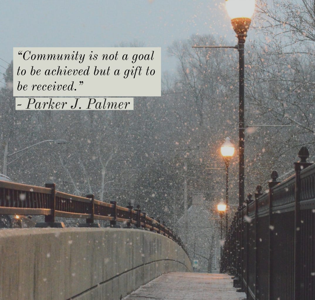 The above quote comes from Parker Palmer’s “Thirteen Ways of Looking at Community”, an article you might find useful for a faculty study.