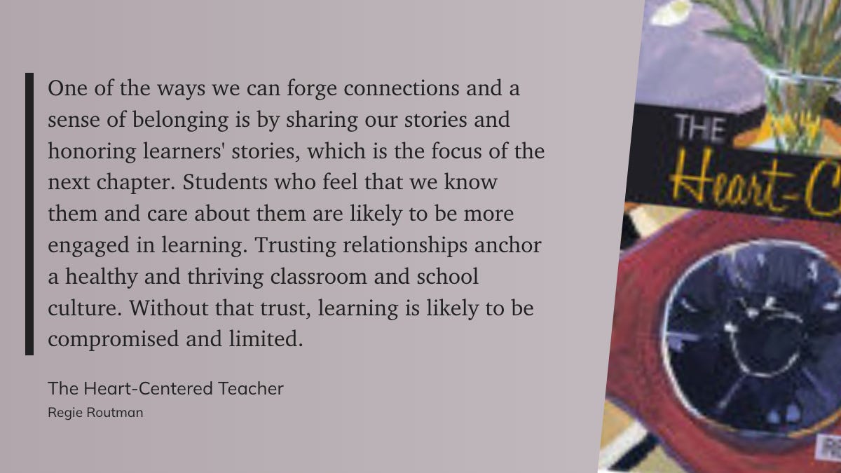 Regie: I want to say one other thing about belonging. The reason I wrote that article, and Matt, you can put the link up for that because I know that it's made into... It's in PDF... is I was working when my last book came out, The Heart-Centered Teacher, I was working with a school district, Walnut Valley, California Unified School District, and I was so impressed with the way they start each school year with a big theme. And the theme last year was, "You are welcome here." And what surprised me about that, because I'd never seen this before, they did a big welcome day, a couple of days, where everybody was invited, almost like a rally, you know, like we're going to start the year off great and you all belong here. But what was different about it, Matt, was that it wasn't just for teachers. The people that attended were the bus drivers, were the nutrition workers, were the social workers, anybody, the landscape people, anybody that was employed in the district was on equal footing as any teacher or principal or administrator. I'd never seen that before. And it said a lot about equity and what they really believed. And the belief being that each one of us has something to teach a child or see in a child. A bus driver's comment to a child. Somebody in the cafeteria can make that child's day or not, right? But that was very, very powerful to me.