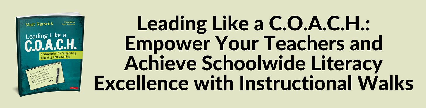 P.S. Join other school leaders and me this October for the first cohort of my new course based on my book Leading Like a C.O.A.C.H. Over four weeks, you will learn key strategies and skills for engaging in coaching conversations that lead to lasting schoolwide literacy excellence. Join the waitlist today to secure your spot for this fall.